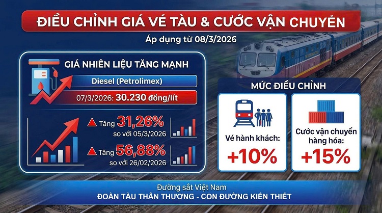 Nguyên nhân chính dẫn đến đợt điều chỉnh này là do giá dầu diesel trong nước liên tục lập đỉnh mới. Theo số liệu từ Petrolimex, tính đến ngày 7/3, giá dầu diesel đã chạm mốc 30.230 đồng/lít, tăng hơn 31% chỉ trong vài ngày và tăng gần 57% so với cuối tháng 2. Việc giá nhiên liệu vốn chiếm tỷ trọng lớn trong chi phí đầu vào tăng "phi mã" đã tạo áp lực lớn lên hoạt động sản xuất kinh doanh của các doanh nghiệp đường sắt.